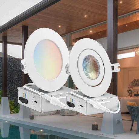 4 Inch Narrow Gap Recessed LED Lighting, Gimbal, 4CCT Color Selectable from Wall Switch, Wet Rated