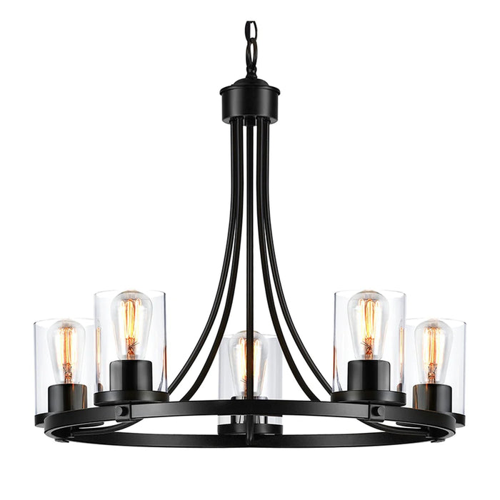 QPlus 5 Light Rustic Round Chandelier Pendant Lamp with E26 Bulb base & Clear Glass Shades - Black / Bronze. These lighting fixtures comes with E26 Bulb base where in you can use any A19, ST19 or filament bulbs to light up the house according to the atmosphere & ambience.