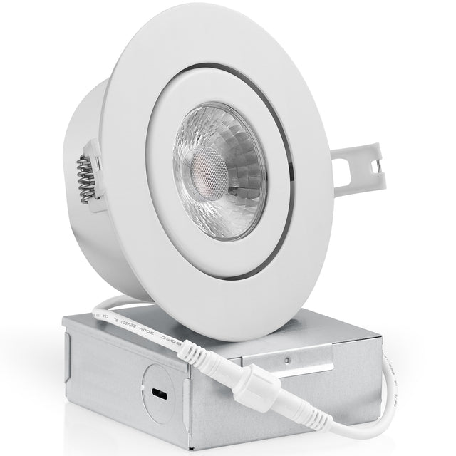 QPlus Luz LED empotrable tipo cardán hermético de 4 pulgadas con caja de conexiones de metal, 10 W, 750 lm, CCT único, regulable, certificación Energy Star, certificación ETL, clasificación IC, ubicación húmeda, 5 años de garantía