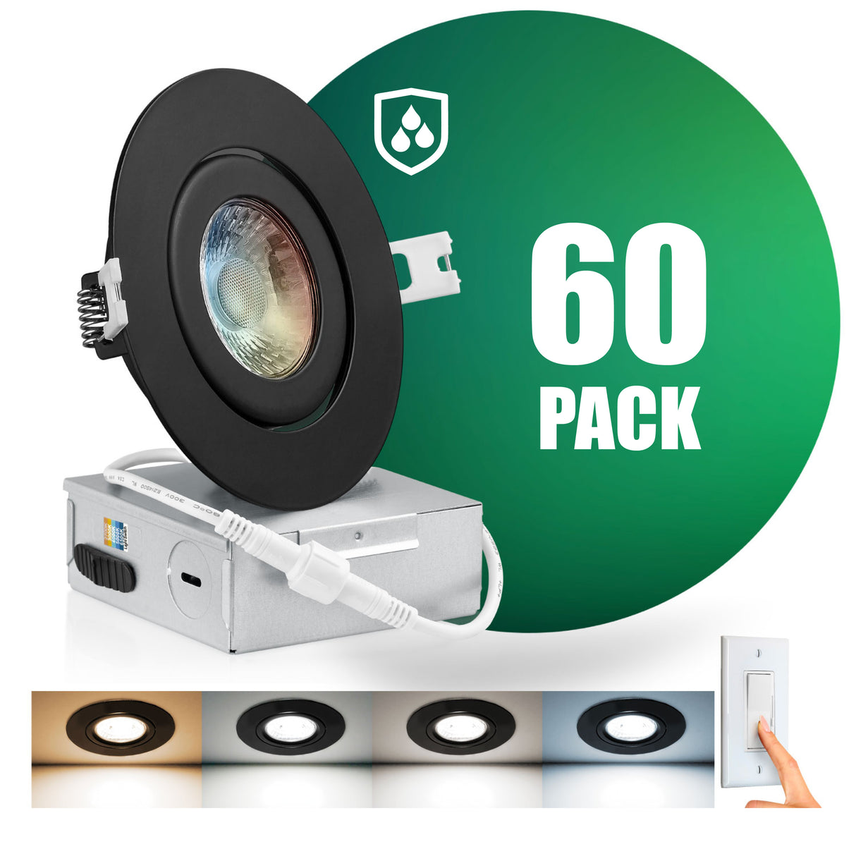 4 Inch Narrow Gap Recessed LED Lighting, Gimbal, 4CCT Color Selectable from Wall Switch, Wet Rated, Black