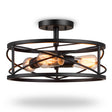 QPlus 14 Inch Vintage Semi Flush Mount Ceiling Light Retro Cage Hanging Fixture with 3 E26 Bulb Base