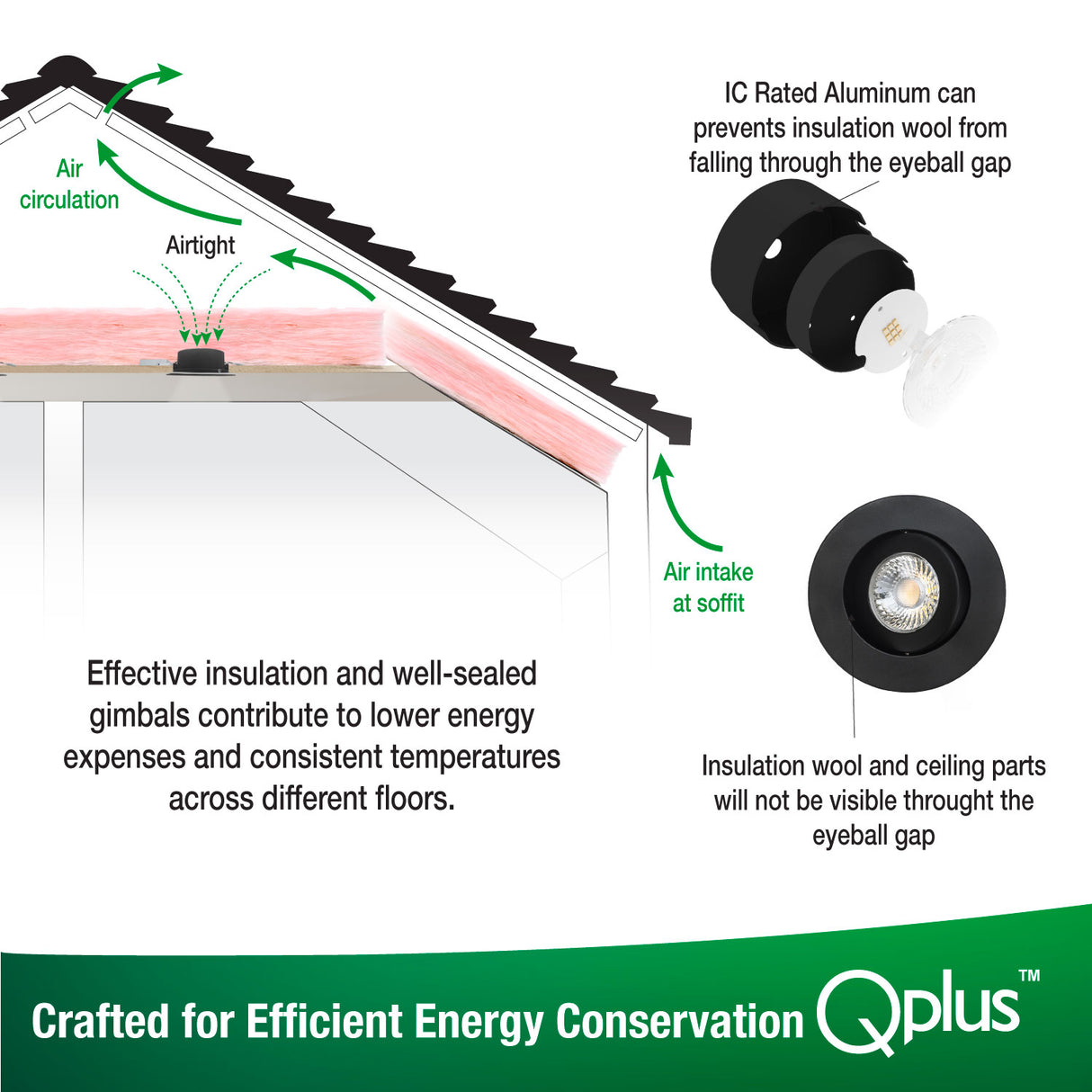 QPLUS 4 Inch Airtight Gimbal Recessed Adjustable Multi Color Temperature LED Pot Light (Changeable Color Temperature By The Wall Switch)