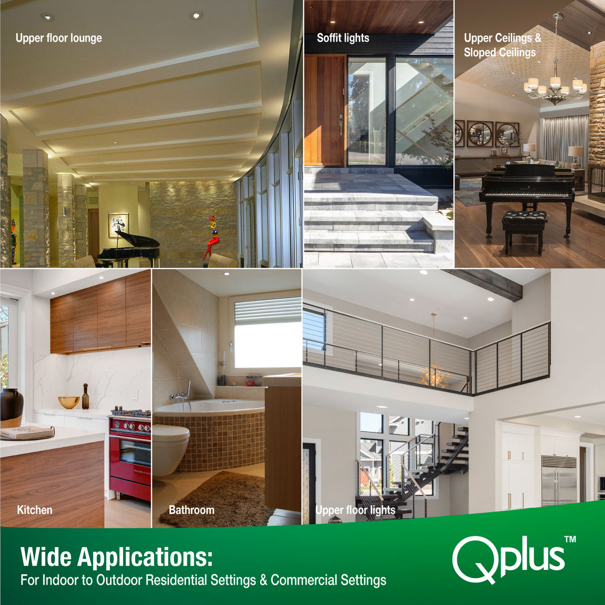 QPLUS Airtight 4CS CCT changing 4 Inch 10W (=75W) Slim Recessed LED Pot Lights is Energy Star Certified, cETLus listed, and Type IC rated. Change the color effortlessly to 3000K, 4000K, 5000K, or 6500K with just a flick of your regular wall switch by setting the junction box switch to “Switch” Mode. If you don’t want to control by regular wall switch, set to either 3000K, 4000K, 5000K, or 6500K in junction box switch. This dimmable pot light would complement any interior and is suitable for use in damp locations. The latest LED technology, gives you high-energy efficient Pot Lights that produce astonishing 750 lumens with just 10W equivalent to a traditional 75W. This easy-to-install, ultra-thin recessed led light has a lifespan of 50000 hours and comes with a 5-year warranty.