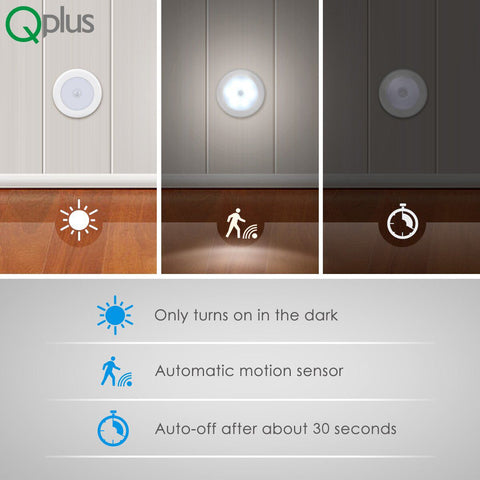 QPLUS Motion Sensor Lights act like little "guardians", provide automated, hands-free way to protect your homes indoors and outdoors. Light up your bedroom, stairs, hallway, closet, or entryway to your home where the light switch is just too far from the door. Don't leave lights on needlessly running up the electric bill.